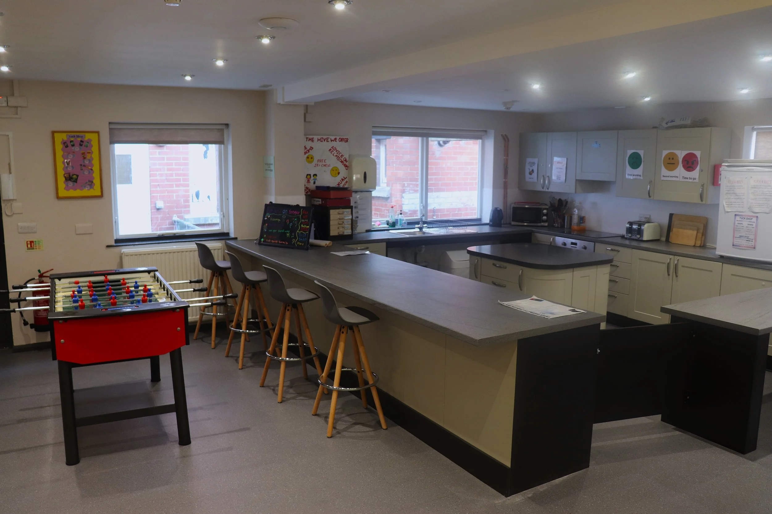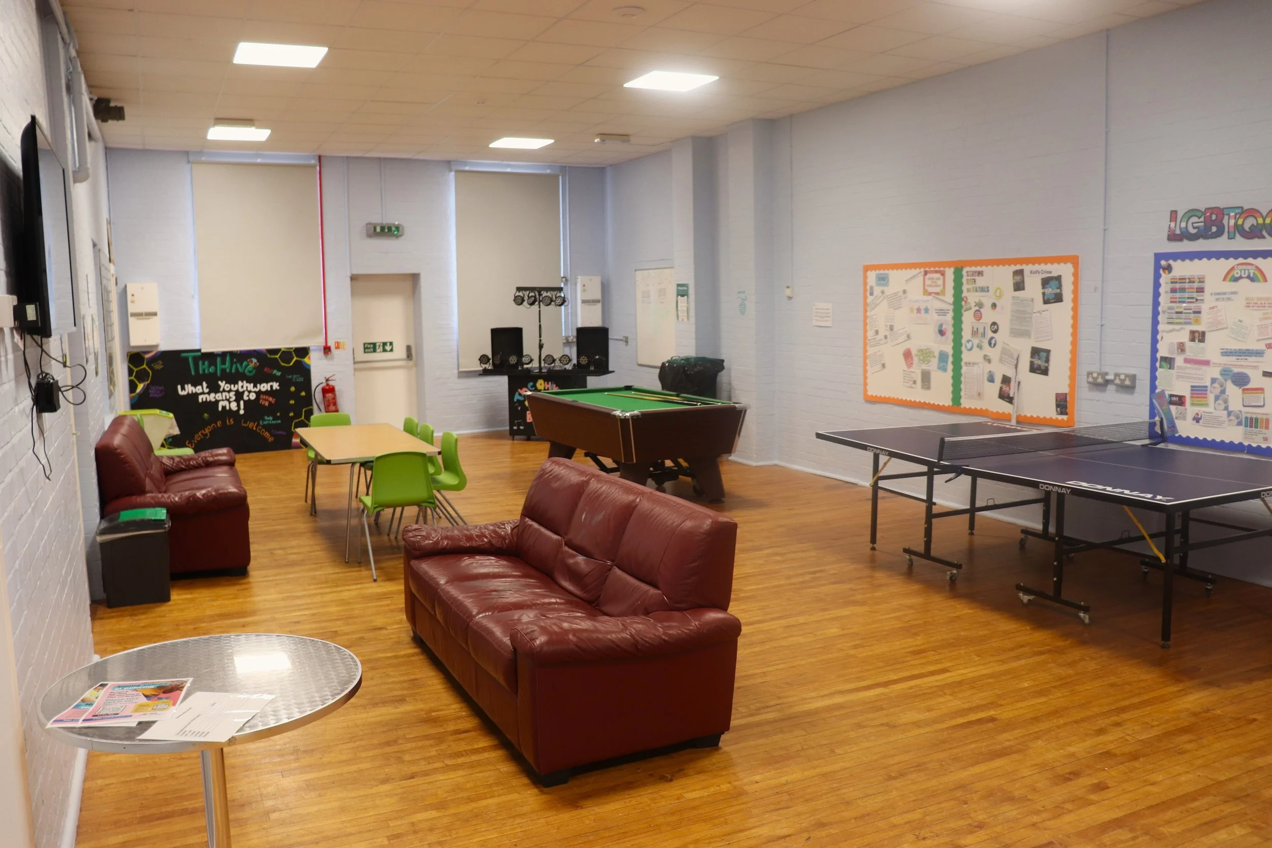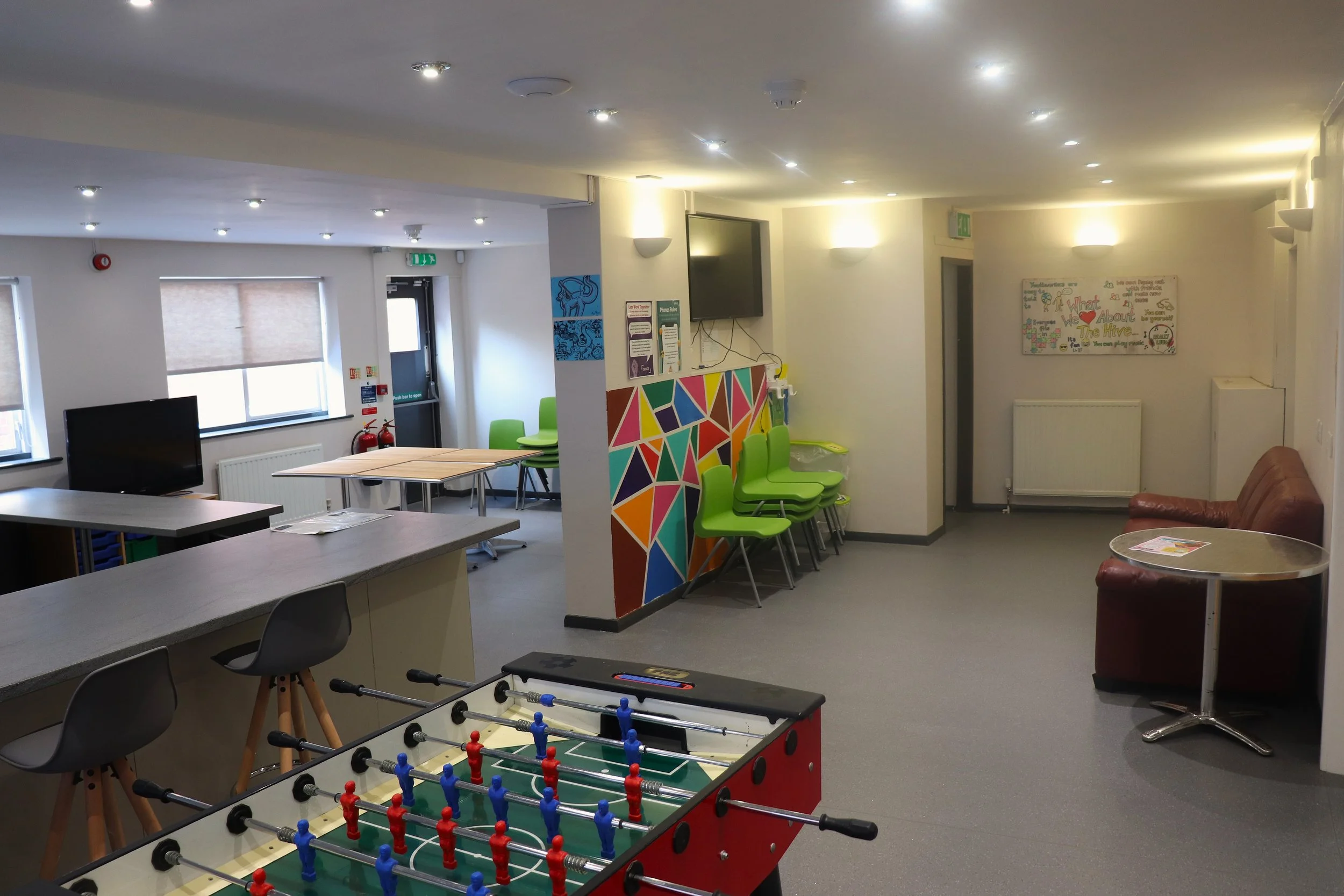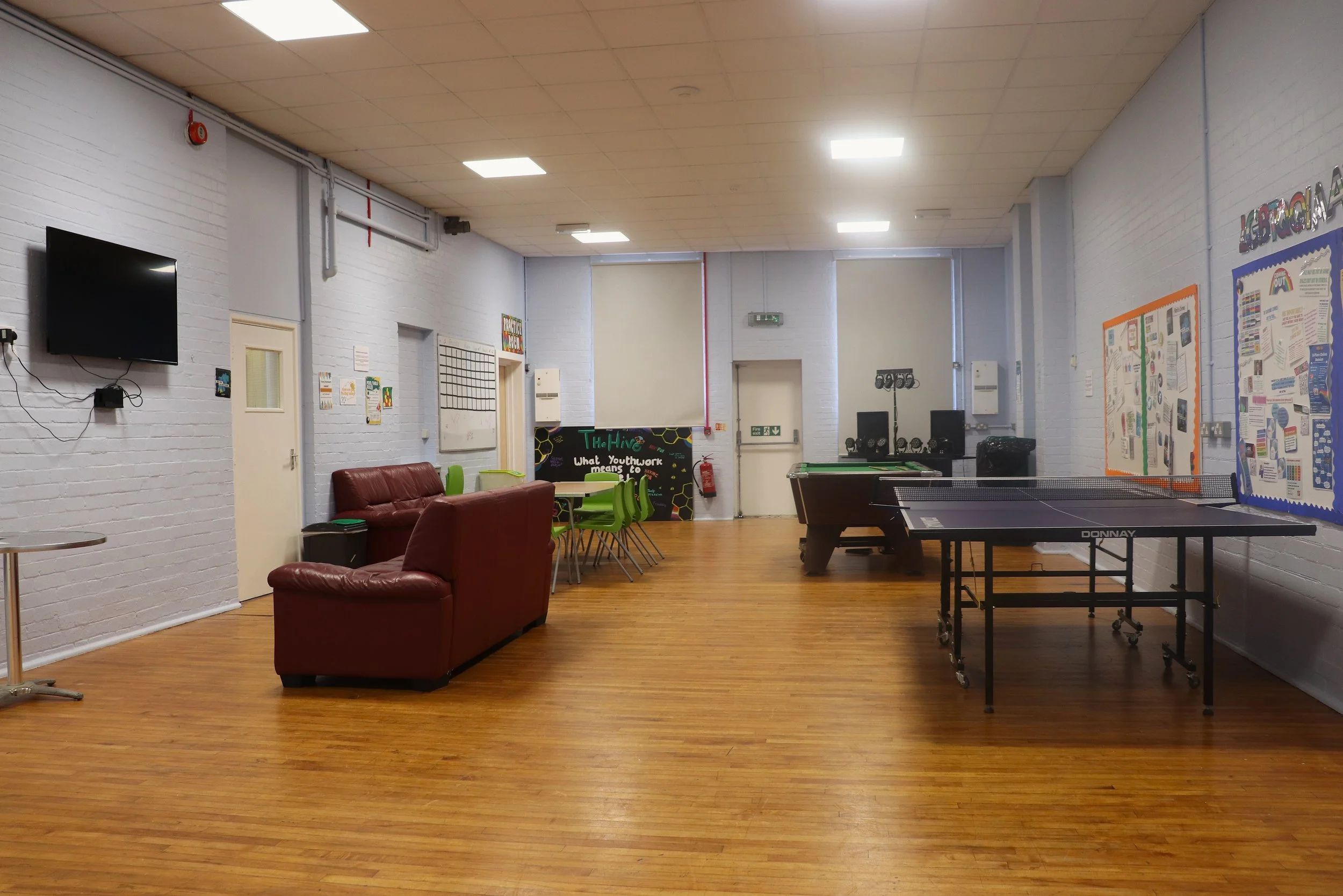 At Space Youth Services, we’re all about providing spaces that work for you. Whether you need a meeting room, youth room, kitchen or even a sports hall, we’ve got a variety of rooms available to hire. Our spaces are simple, affordable, and designed to be flexible, making them perfect for all sorts of groups and activities.